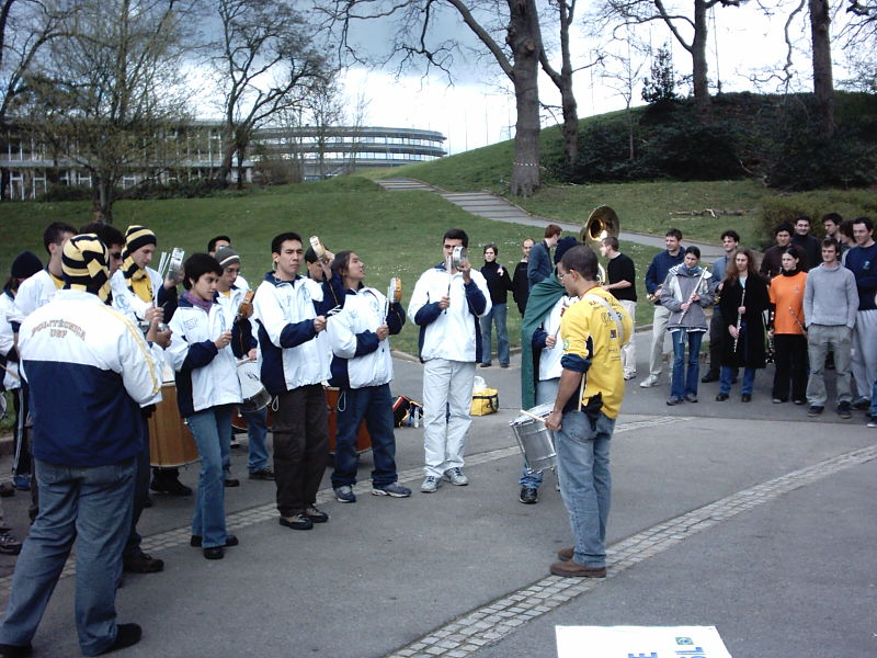 O dia-a-dia nos trouxe muitas coisas boas, que são contadas nas fotos abaixo.Clique nos links para as fotos para abri-las (deixei a página dessa forma para que a página não ficasse muito carregada). Os 20 integrantes encontraram-se na Poli, no dia 19/03, partindo para o aeroporto de Guarulhos ao meio-dia. Partimos no vôo AF0455, o Boeing 777 da Air France, às 17:30. Chegamos ao aeroporto Charles de Gaule às 8:00 do horário local, porém parte da bagagem foi extraviada e ficou no Brasil. Chegou dois dias depois, danificada. Seremos indenizados em breve. Nantes é uma cidade a oeste de Paris. Uma das melhores cidades para se viver na Europa, tem o melhor índice de qualidade de vida da França. A primeira apresentação da Rateria na França foi no Carnaval de rua de Nantes, ao lado dos estudantes da EC. Chegamos à EC Nantes, fizemos apresentações aos alunos de lá. Foi organizada uma “soirée bresilienne”, onde nos apresentamos e mostramos um pouco da cultura brasileira (comida, bebida e música) A Escola gentilmente nos ofereceu uma visita técnica aos seus laboratórios. Dia 24/03/2004, Paris. Chegamos a Paris e realizamos alguns de nossos sonhos. Claro, o mais importante: visitar a Torre Eiffel. Visitamos o museu do Louvre, um lugar belíssimo, além do Arco do Triunfo, Bastilha, etc. Visitamos igrejas como “Sacre Coeur”, “Notre Dame”, “Saint Etienne”. Todas muito bonitas. Junto à “Mason de la Radio”, às margens do Senna, um momento inesquecível. Em Paris, nos apresentamos em várias festas, como essa na EC Paris. Chegamos a Lyon, a cidade mais ao sul entre as que visitamos. Lyon foi um importante centro do Império Romano do Ocidente. Sobraram algumas ruínas daquele tempo. Entre as refeições que fizemos, algumas novidades. Essa foto é de um prato do Restaurante Universitário de lá. Está servido? Visita técnica a essa empresa, em sua unidade de produção de silicone. Apresentação na vivência da EC Lyon, onde mostramos um pouco do Brasil aos estudantes franceses. Visitamos o museu Lumiére, em Lyon, cidade natal dos irmãos que revolucionaram a sétima arte. Esta cidade, próxima da fronteira com a Bélgica (norte da França), é a Capital Européia da Cultura para 2004. A apresentação do Brasil foi feita pelo prof. Antônio a um anfiteatro lotado. Fomos apresentados aos laboratórios da EC Lille. Visitamos o porto de Lille, um porto fluvial onde trafegam principalmente água mineral Evian e cervejas como a Kronembourg. Apresentação na cidade de Lille. Mostramos a cultura brasileira numa praça central de Lille. TGV. Aproveitamos um dia livre para ir de TGV, em 30 minutos, até a capital da Bélgica. Passamos 8 horas (de frio) nesta bela cidade. Passeio pelo centro histórico. Essa cidade foi local de passagem em várias guerras, principalmente a Primeira Guerra Mundial. Observe as balas de canhão incrustadas na fachada do prédio. Aeroporto Charles de Gaule rumo a São Paulo. Estamos aqui, tocando pela Poli novamente (como nesse jogo do Engenharíadas do ano passado) e recuperando o tempo de aula muito bem perdido. Veja a localização das cidades que visitamos no mapa da França.